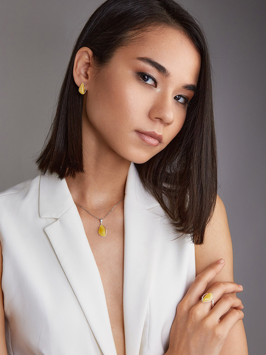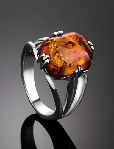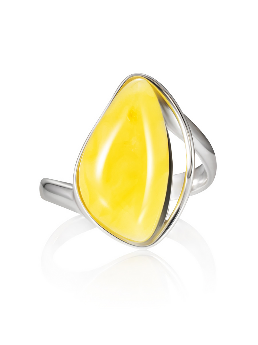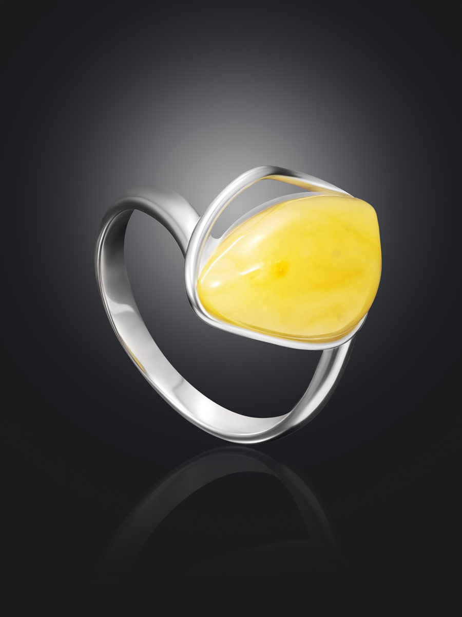 Кольцо с натуральным ярко-медовым янтарём «Лагуна»