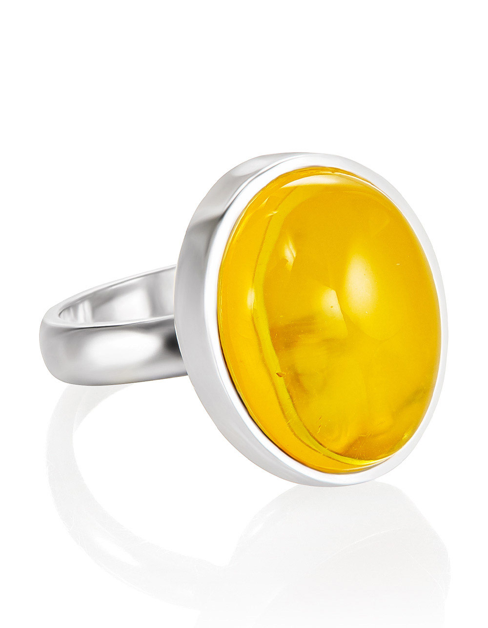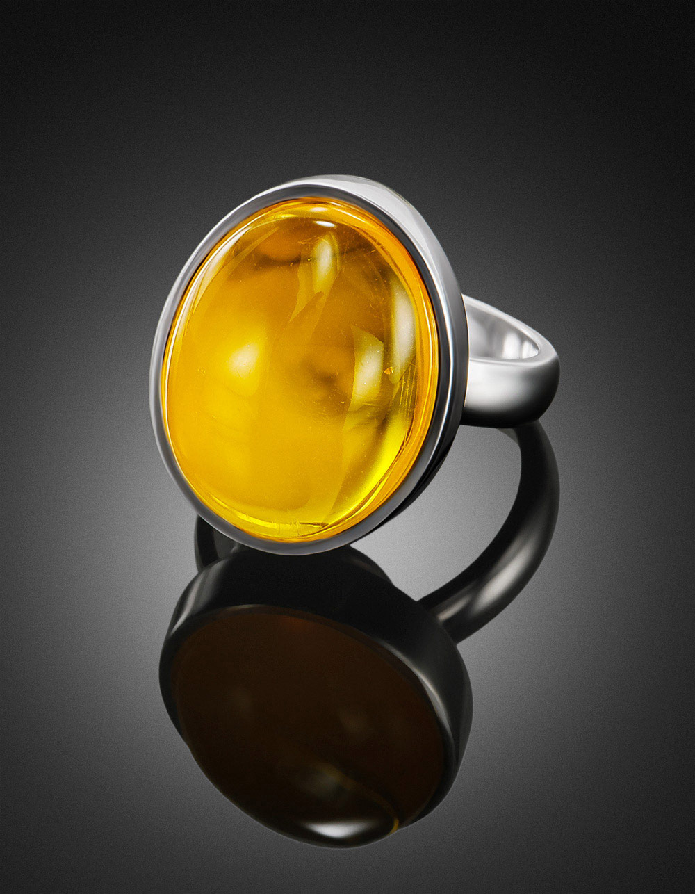 Кольцо с сияющей вставкой из натурального лимонного янтаря «Глянец»