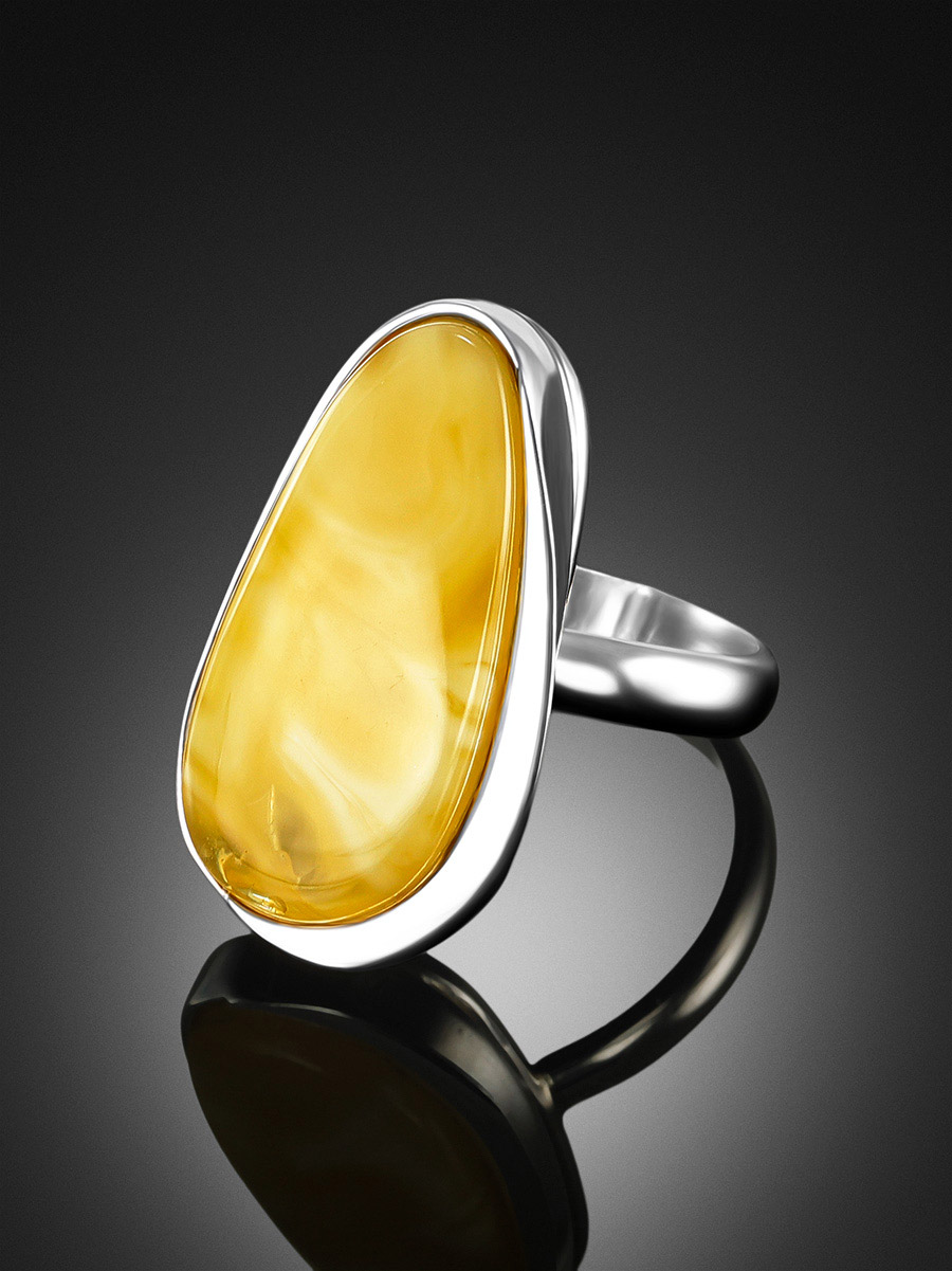 Кольцо с вставкой из натурального янтаря «Лагуна»