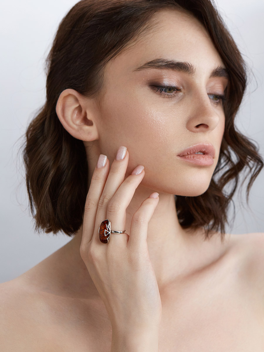 Кольцо с вставкой из натурального янтаря «Рандеву»