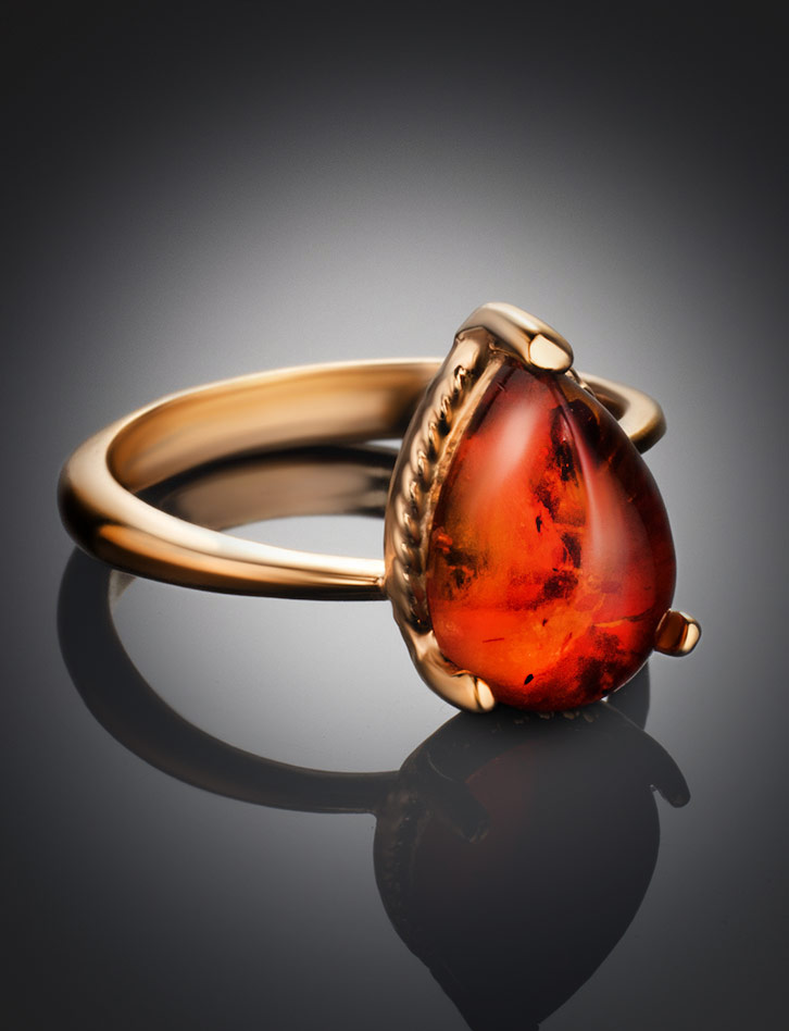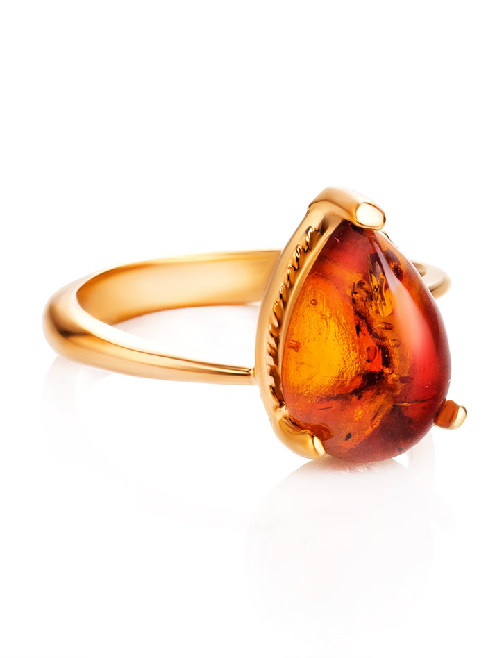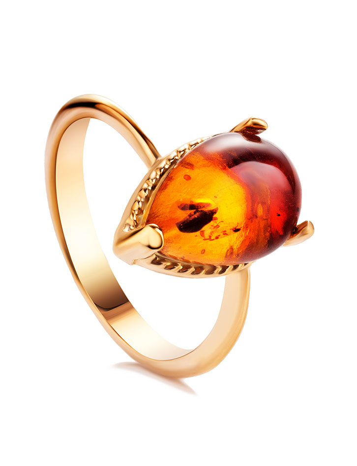 Кольцо с ярким коньячным янтарём «Огонёк»