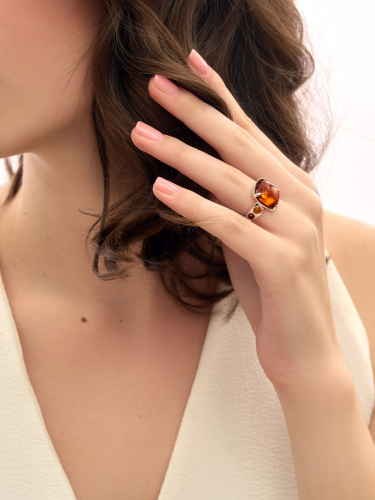Кольцо со вставкой из натурального янтаря «Фиори»