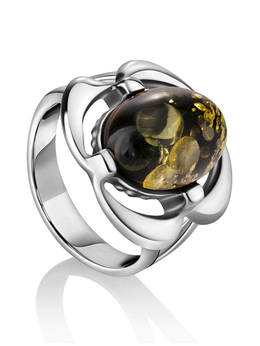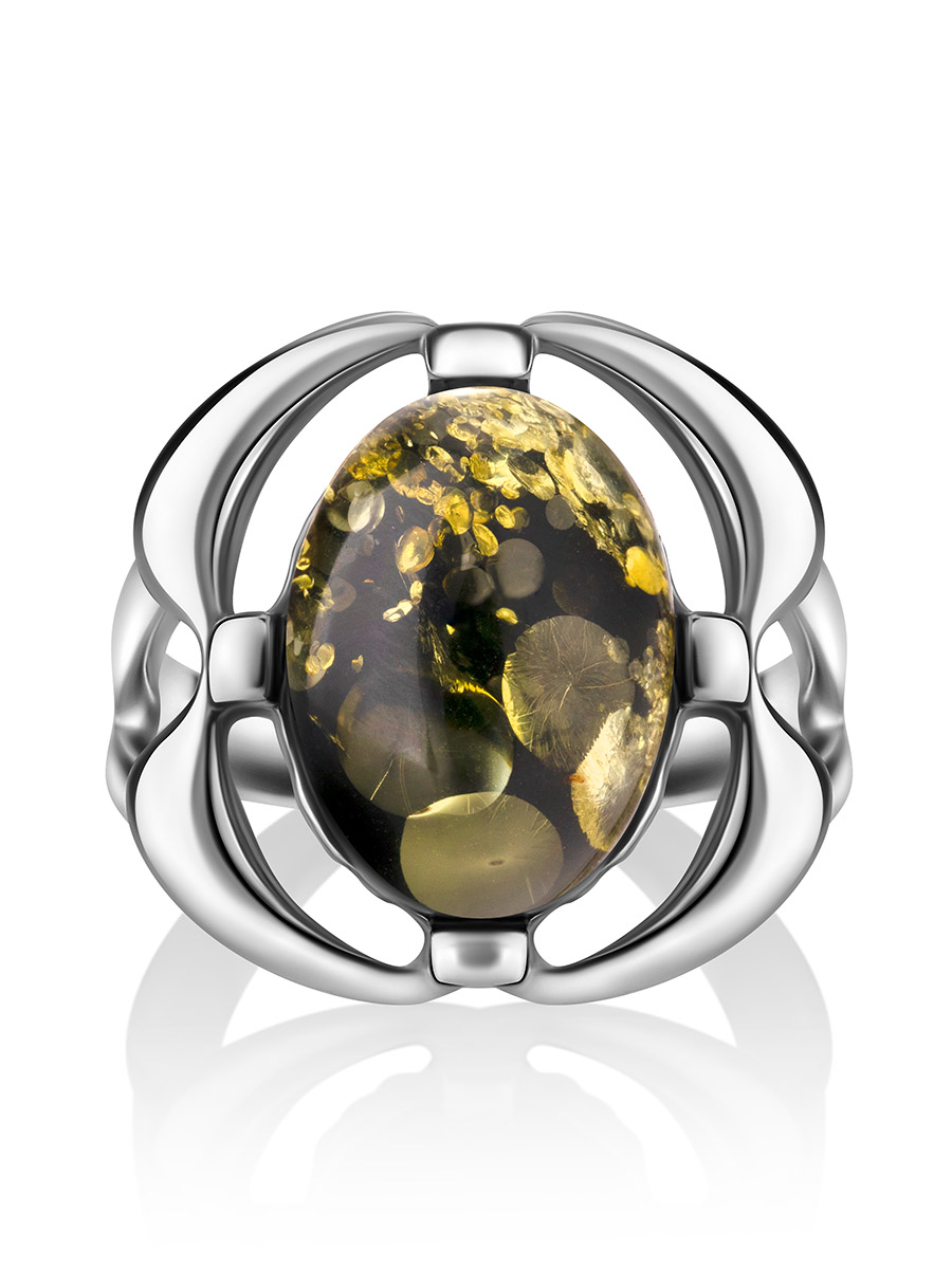 Кольцо со вставкой из натурального янтаря зеленого цвета «Фиалка»