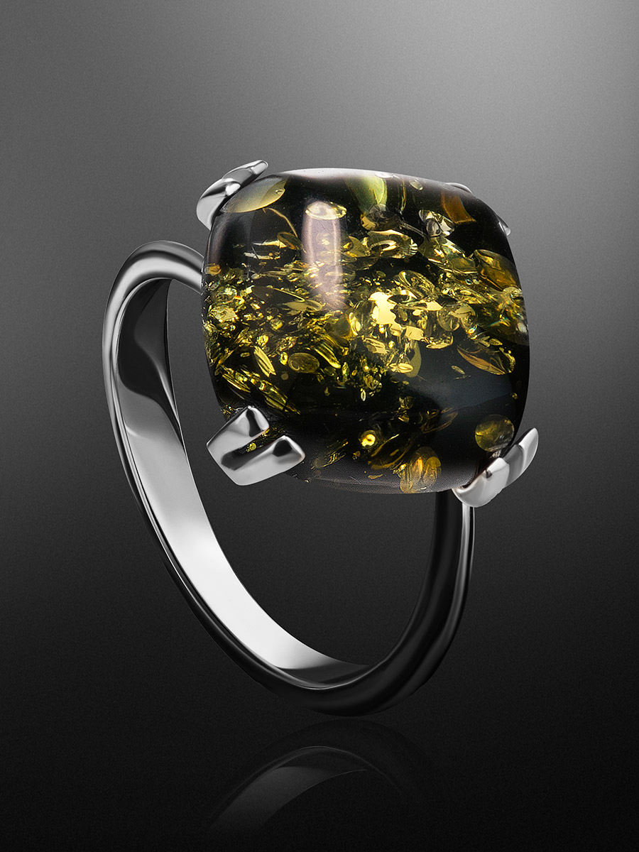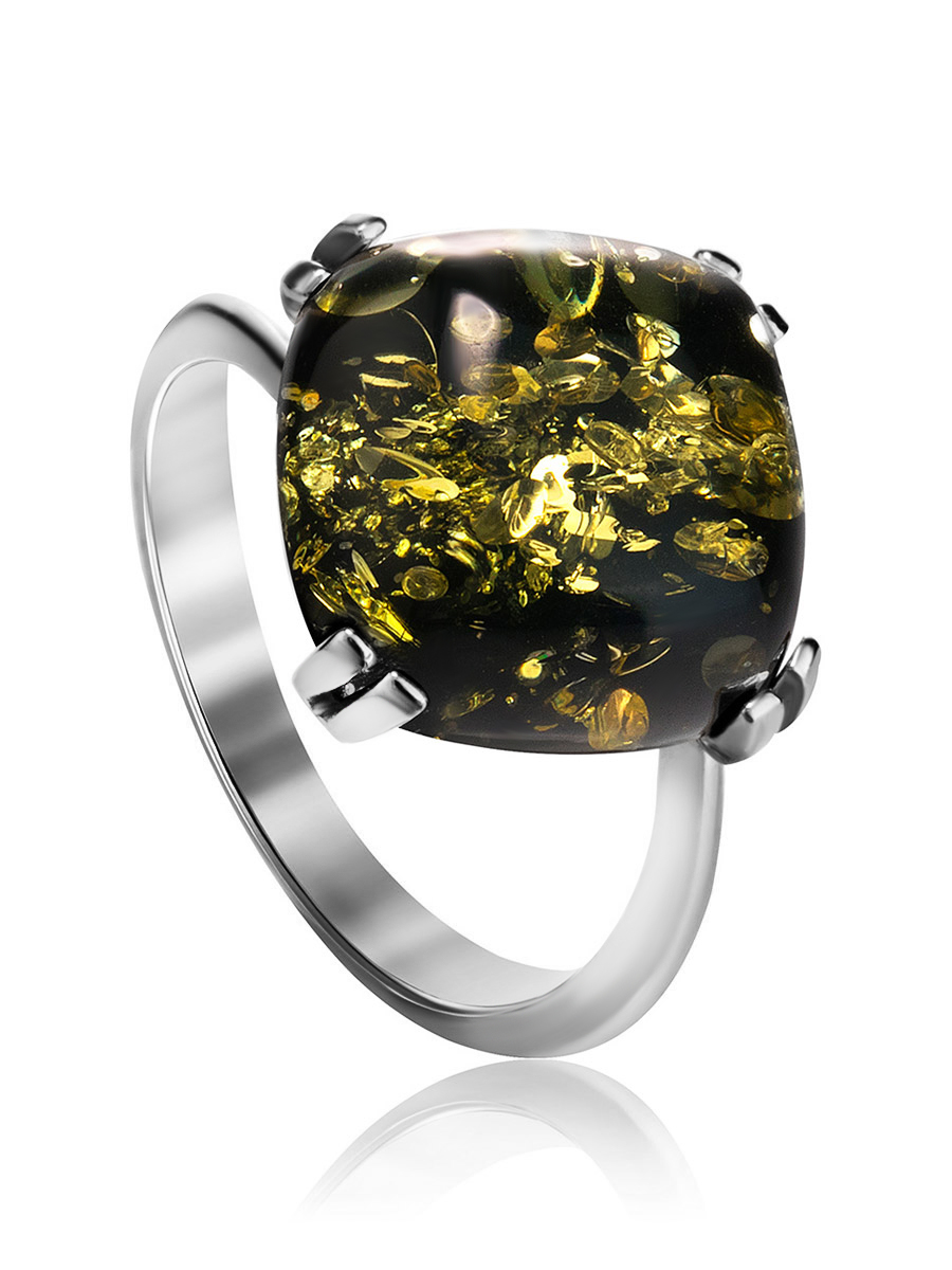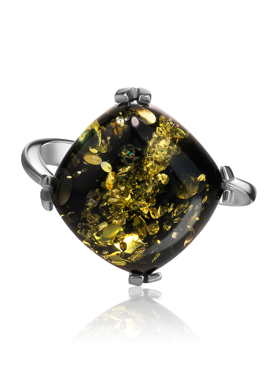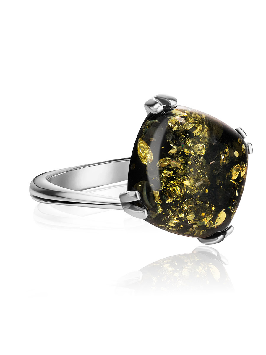 Кольцо со вставкой из зеленого искрящегося янтаря «Византия»