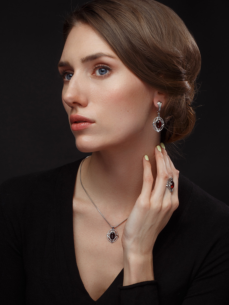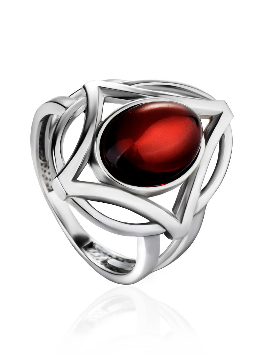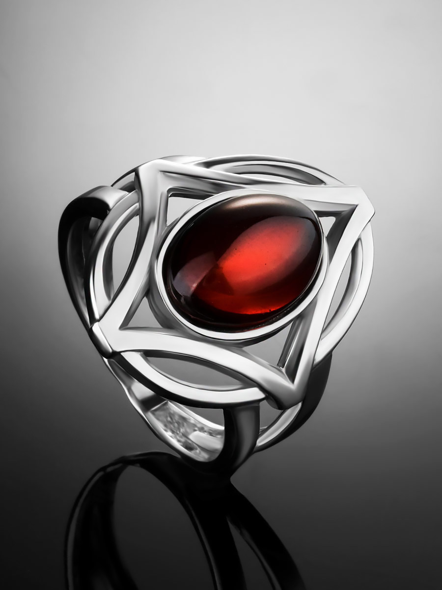 Кольцо, украшенное натуральным вишнёвым янтарём «Буссоль»