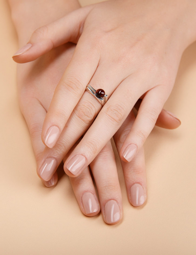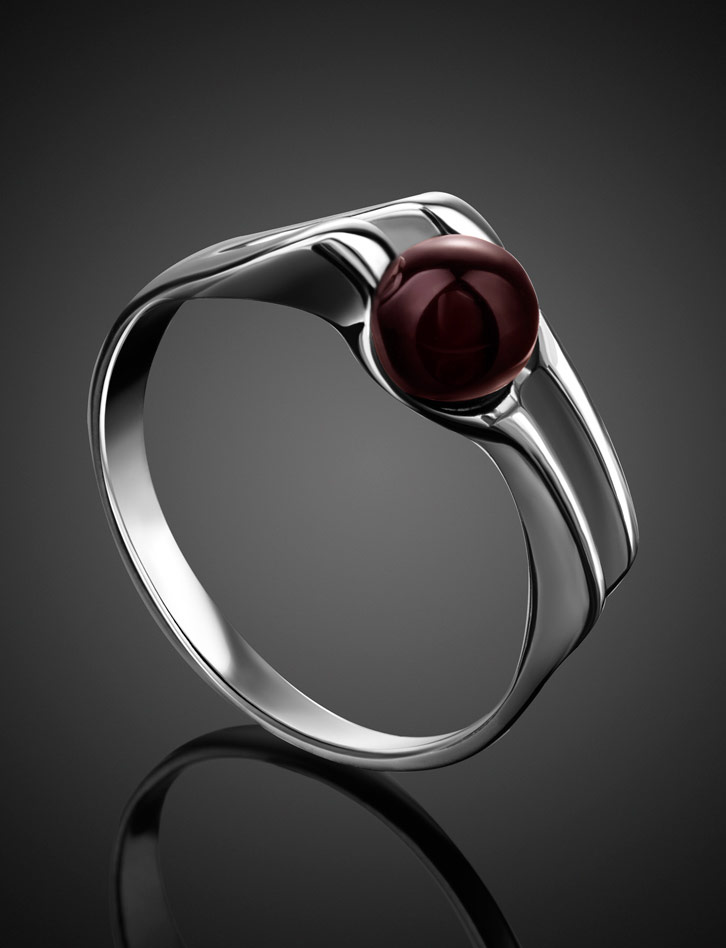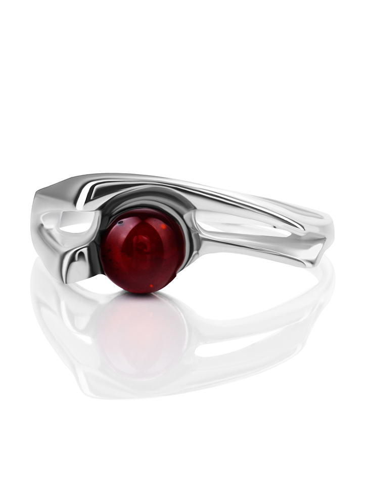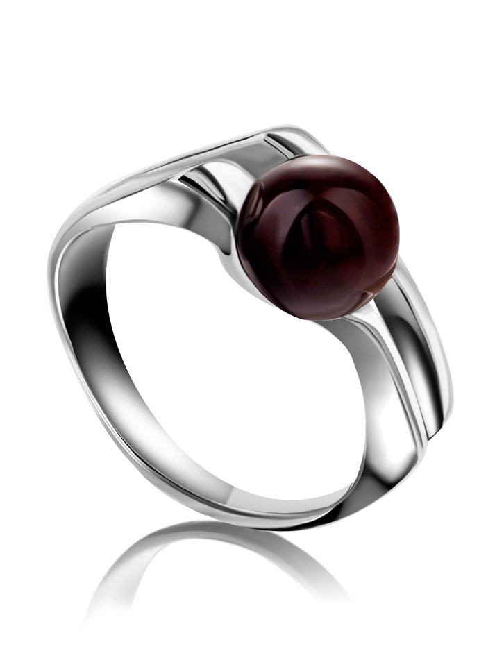Кольцо, украшенное натуральным янтарём вишнёвого цвета «Токио»