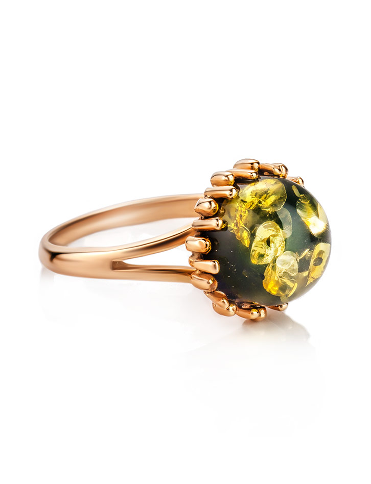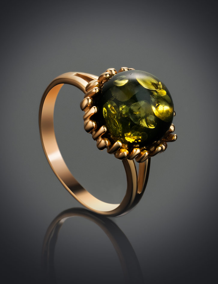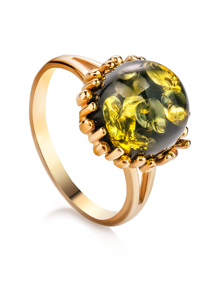 Кольцо, украшенное янтарём зелёного цвета «Бруния»