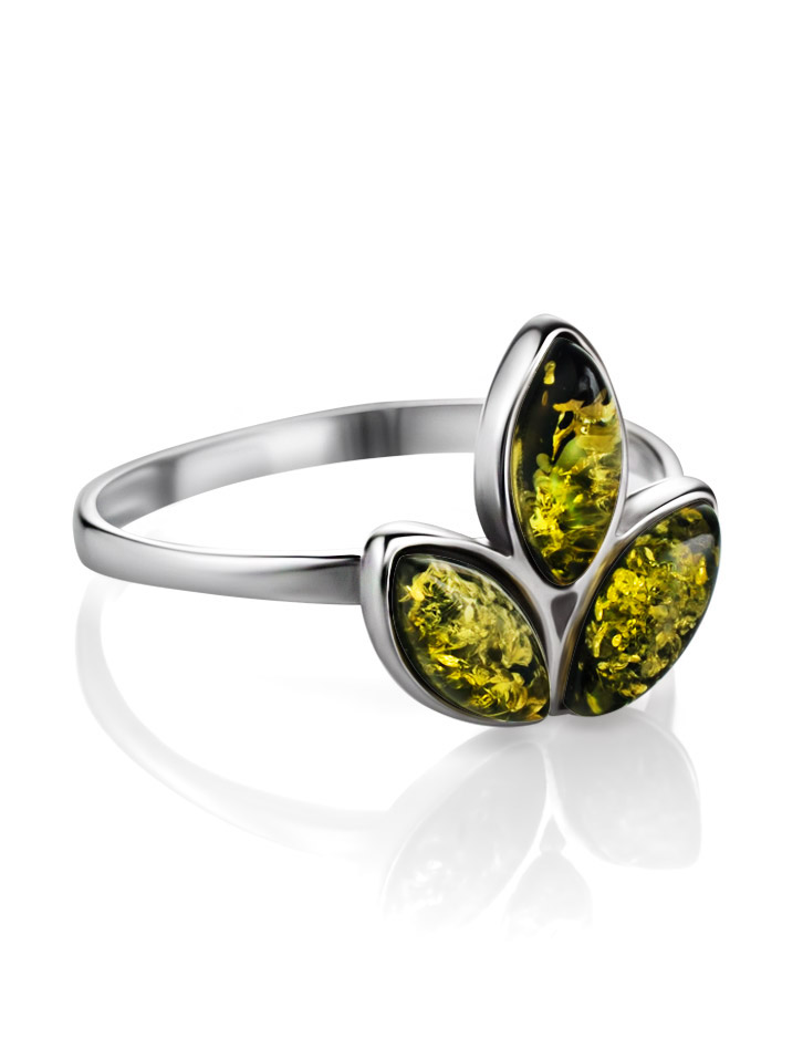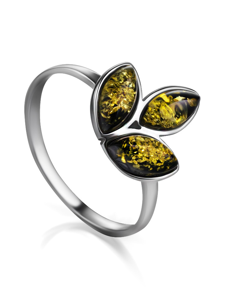 Кольцо в растительном дизайне с натуральным зелёным янтарём «Флора»