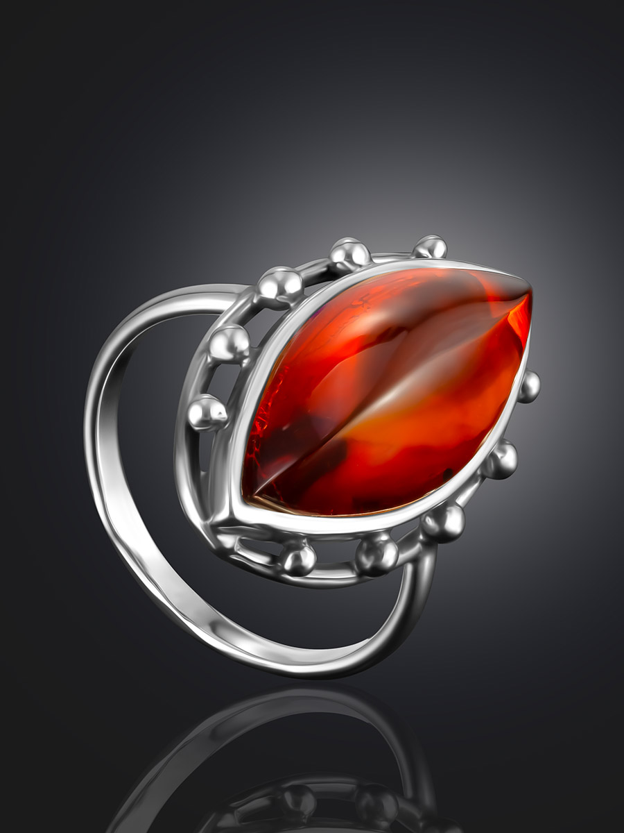 Кольцо в винтажном стиле «Годива» с коньячным янтарём