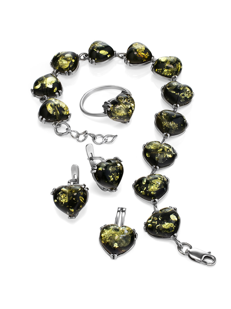 Размеры камня (мм): 11х9 Вес изде..показатьлия (г): 2.2 Цвет: зеленый Материалы: Натуральный янтарь / Серебро 925° Коллекция: Византия_x000D_