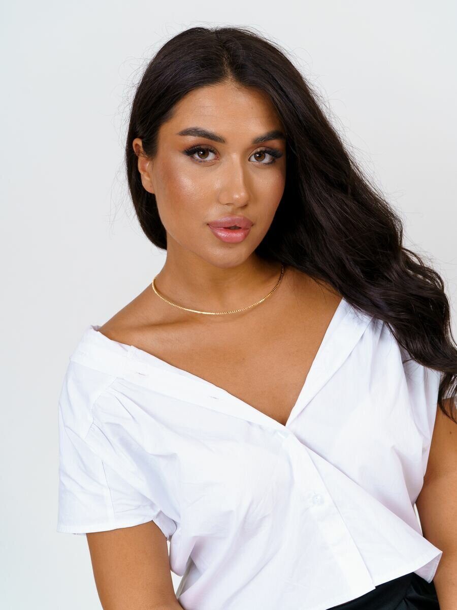 Колье жесткое раздвижное на шею, цвет золотистый, цвет камня: белый прозрачный, арт.018.622