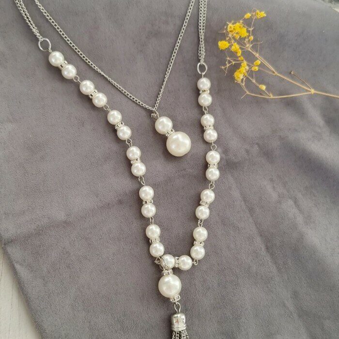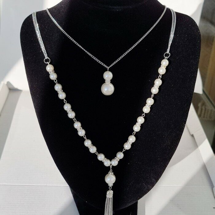 Колье с жемчугом, цвет цепочки: серебристый, арт.018.698