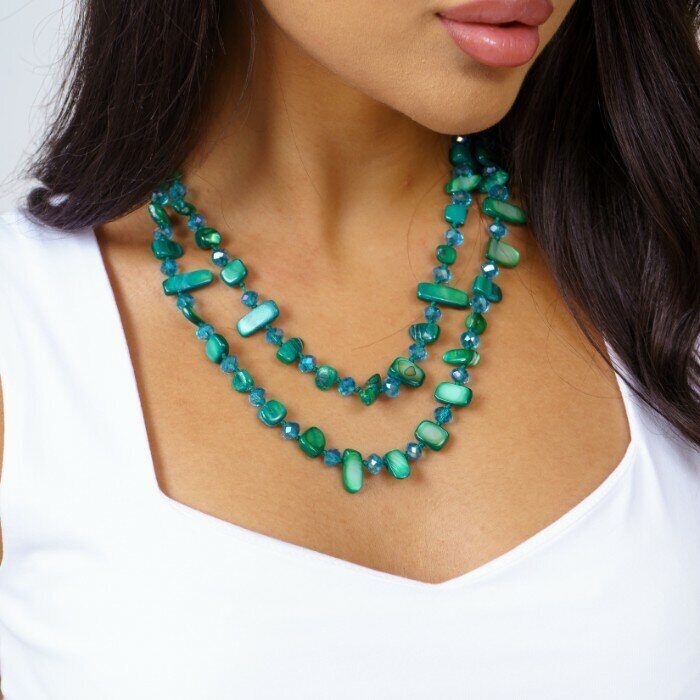Длинное колье из натуральных камней, цвет: зеленый, арт.018.703