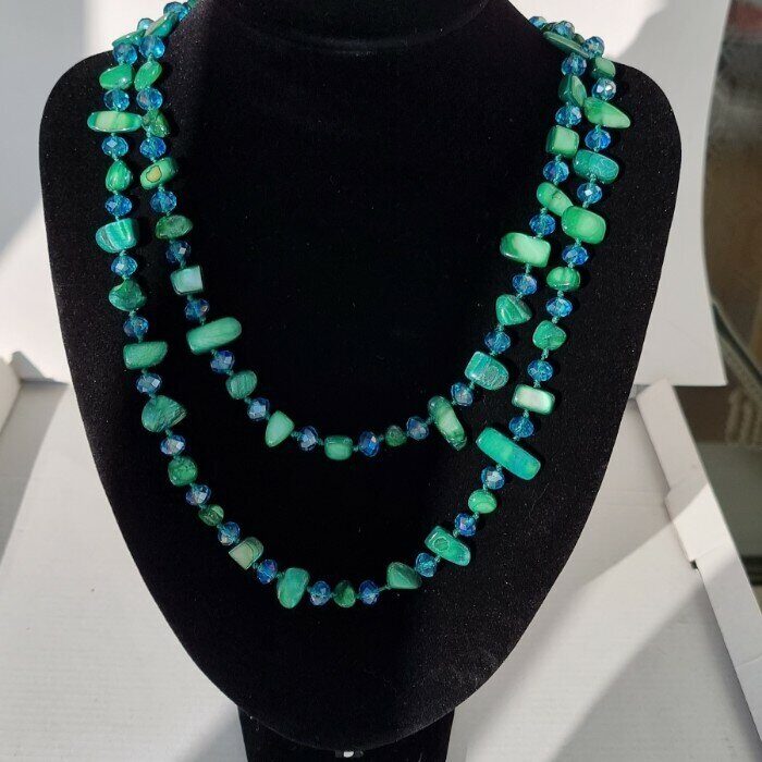 Описание Можно одевать в 2 оборота, можно в один, или завязывать узлом. Длина бус: 58 см. Вес: 78 гр.
