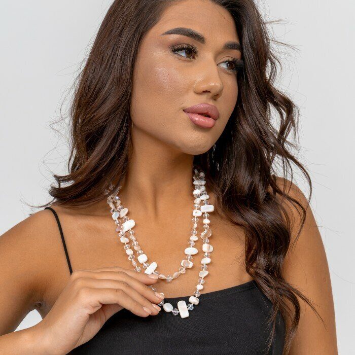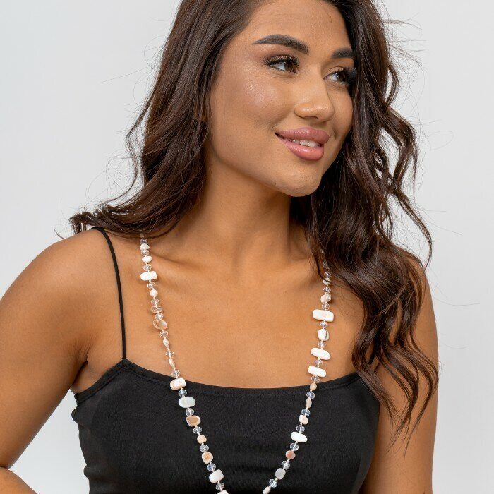 Длинное колье из натуральных камней, цвет: прозрачный, молочный, арт.018.734