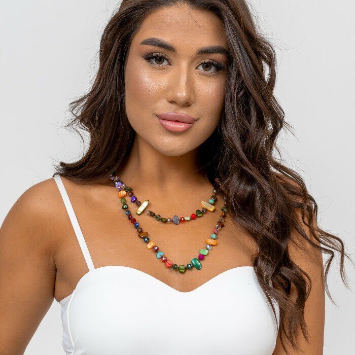 Длинное колье из натуральных камней, цвет: разноцветные, арт.018.738