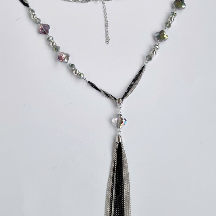 Колье , цвет цепочек: черный и серебристый, вставка: камни переливающиеся, арт.032.549