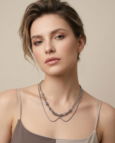Это колье станет прекрасным дополнением к вашему образу. Выполнено из высококачественной гипоаллергенной стали, что делает его безопасным для людей с чувствительной кожей.