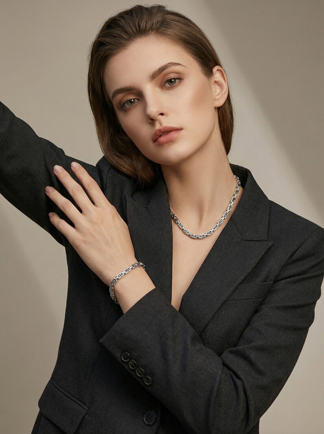 Колье подойдет как мужчинам, так и женщинам благодаря своему минималистичному дизайну и современному исполнению.