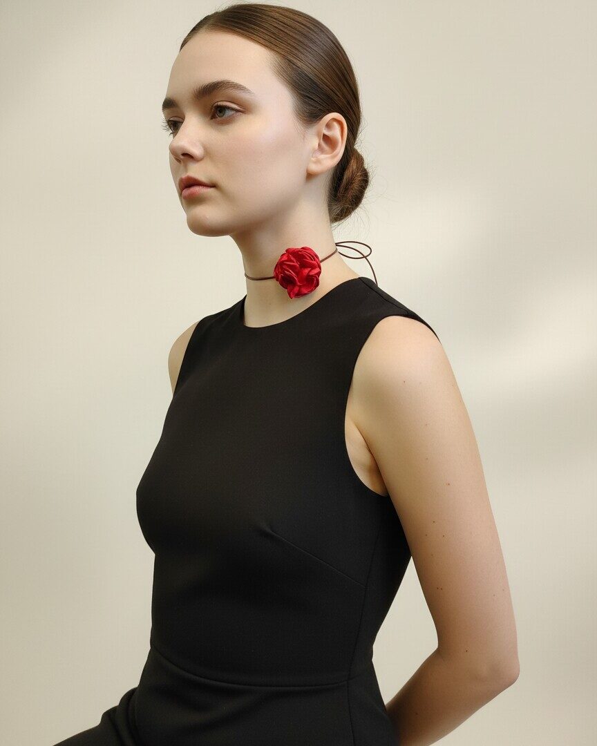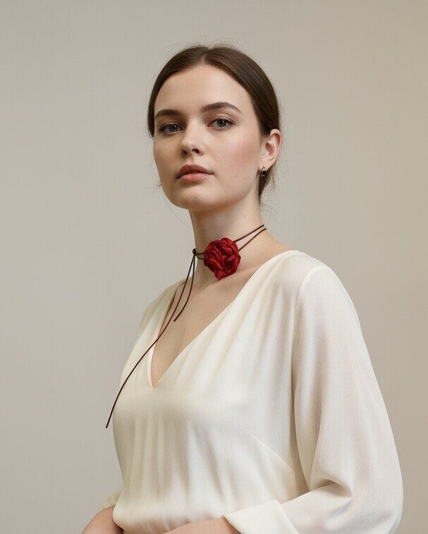 Длина шнура — 110 см, что позволяет адаптировать чокер под разные стили одежды и формы шеи.