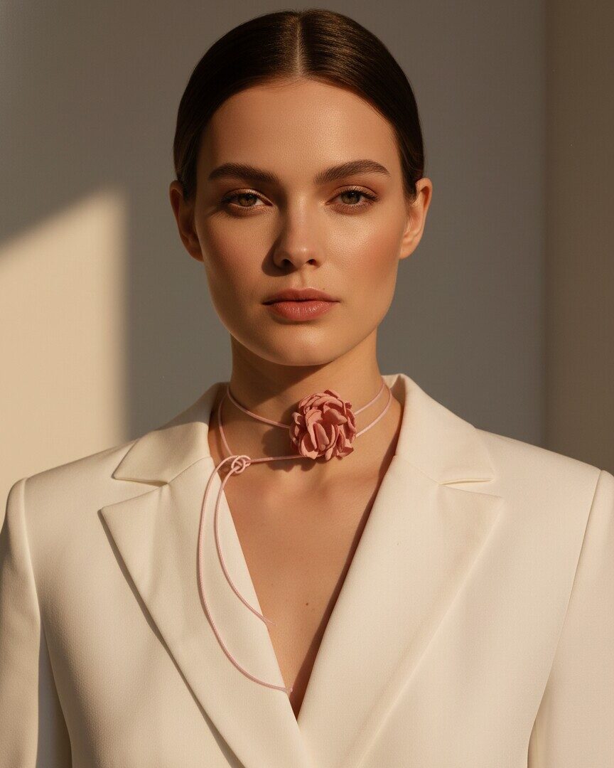 Длина шнура — 110 см, что позволяет адаптировать чокер под разные стили одежды и формы шеи.
