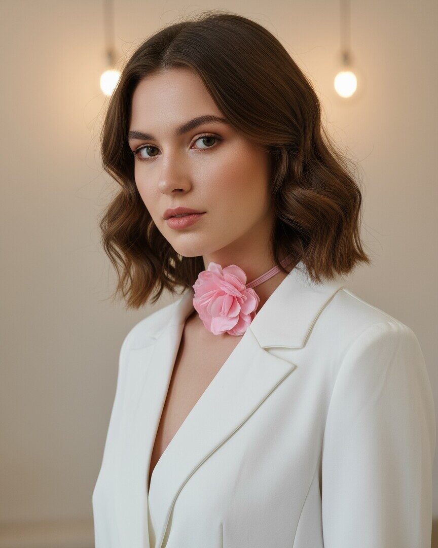 подходит для вечерних нарядов, подчёркивает индивидуальность;