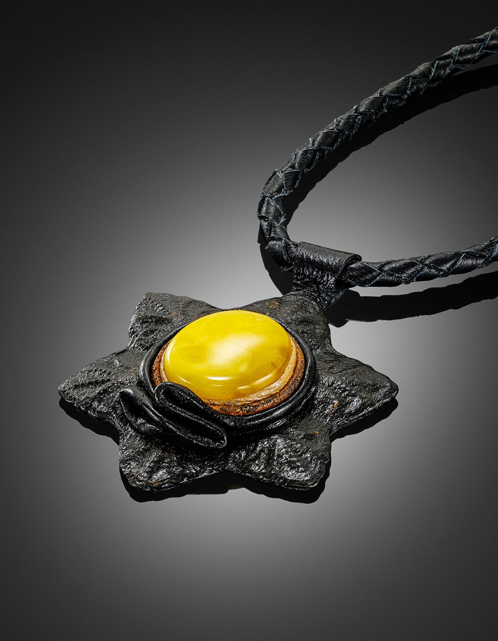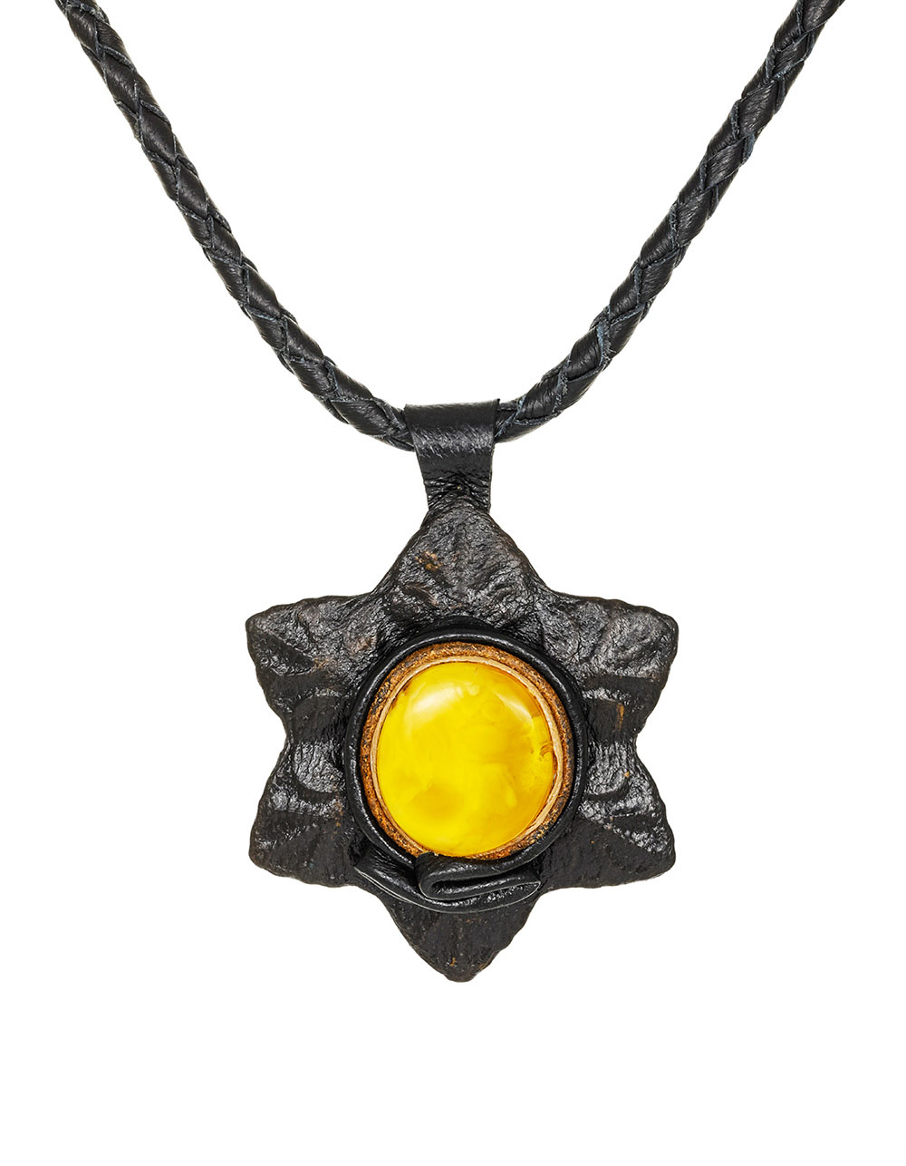 Крупный камень с разводами — будто застывшие потоки древней смолы. Кожаный шнур подчеркивает природную фактуру и придает этнические мотивы._x000D_