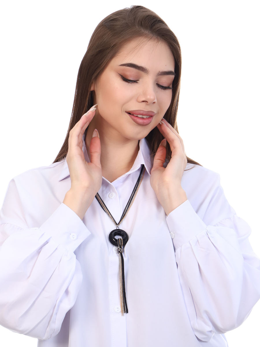 Описание Размер колье: общий диаметр 86 см, длина кулона: 3.5 см. Состав: металл.
