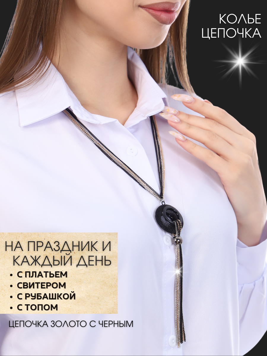 Колье длинное цепи с кулоном 121098, арт.018.358