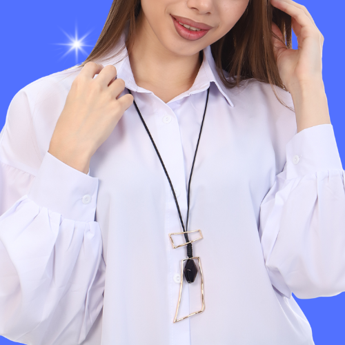 Описание Размер колье: общий диаметр 82 см, длина кулона: 3 см, ширина 1.5 см. Состав: металл.