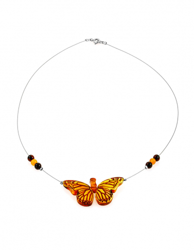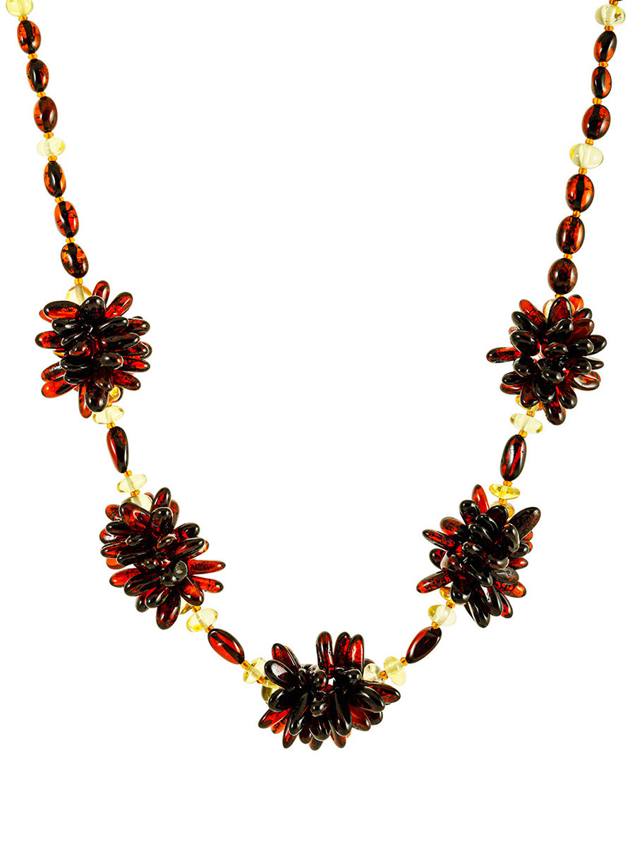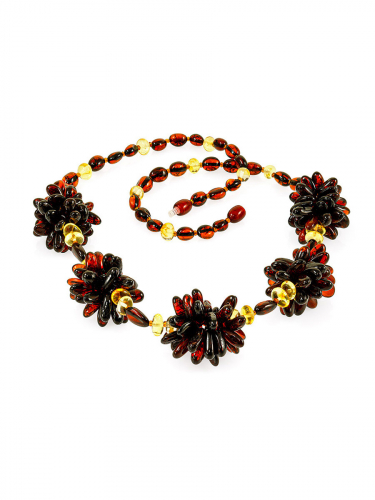 Колье «Хризантема» из балтийского лимонного и тёмно-вишнёвого янтаря