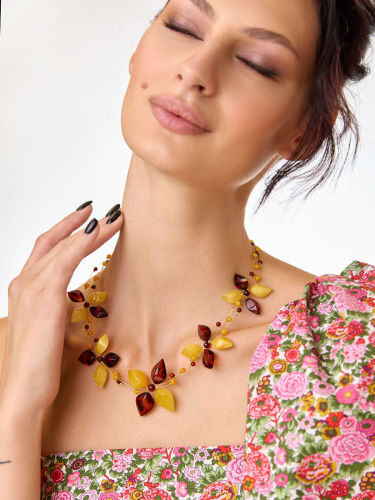 Колье из кожи «Амазонка» с медовым янтарём