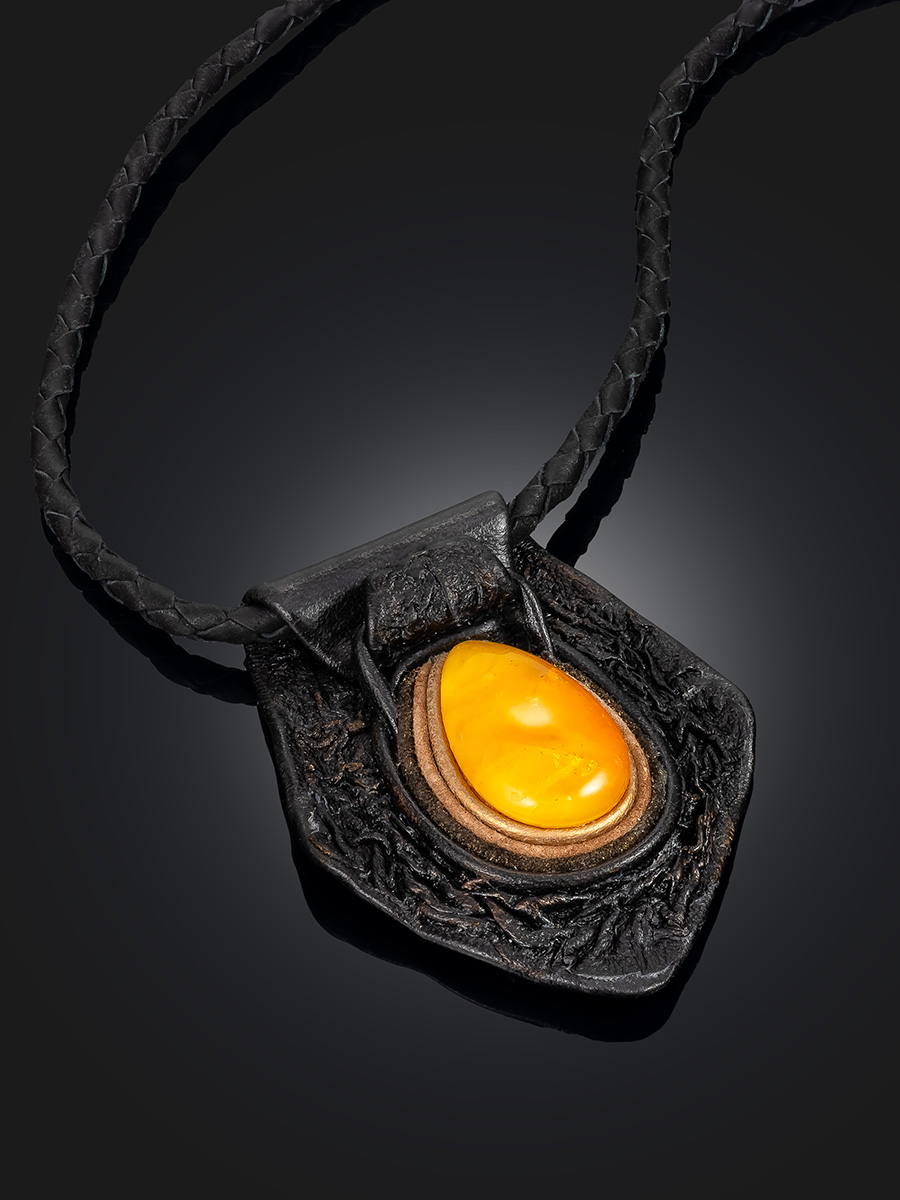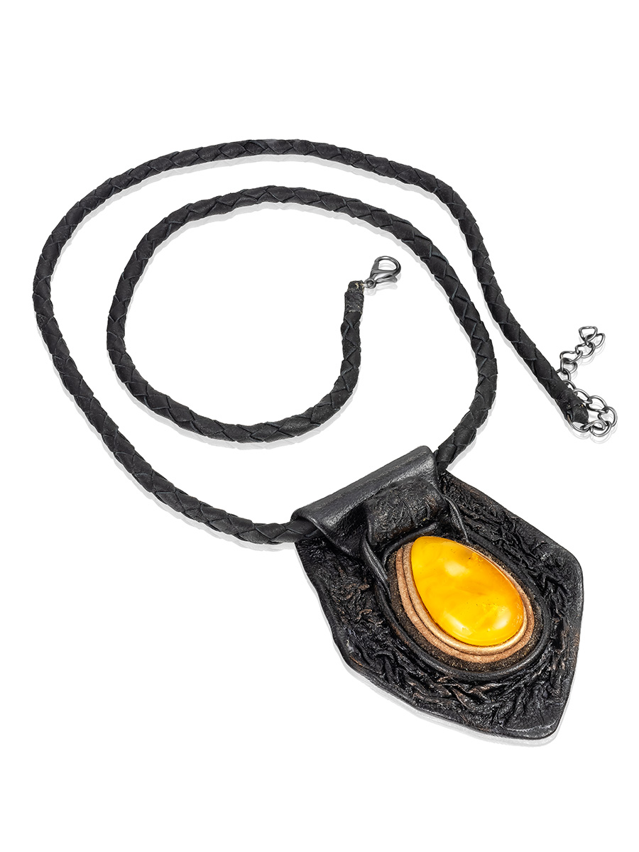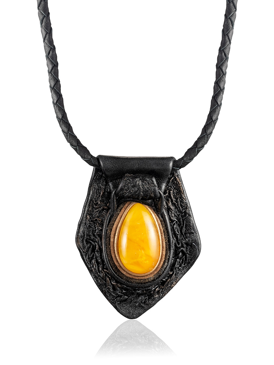 Колье из кожи «Амазонка» с медовым янтарём