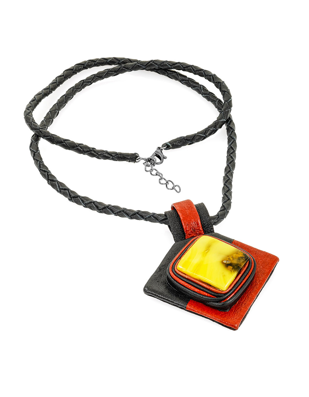 Колье из кожи «Амазонка» с медовым янтарём