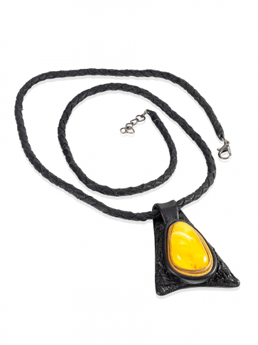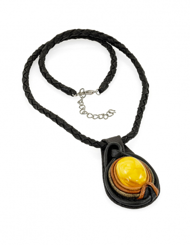 Колье из кожи «Амазонка» с медовым янтарём