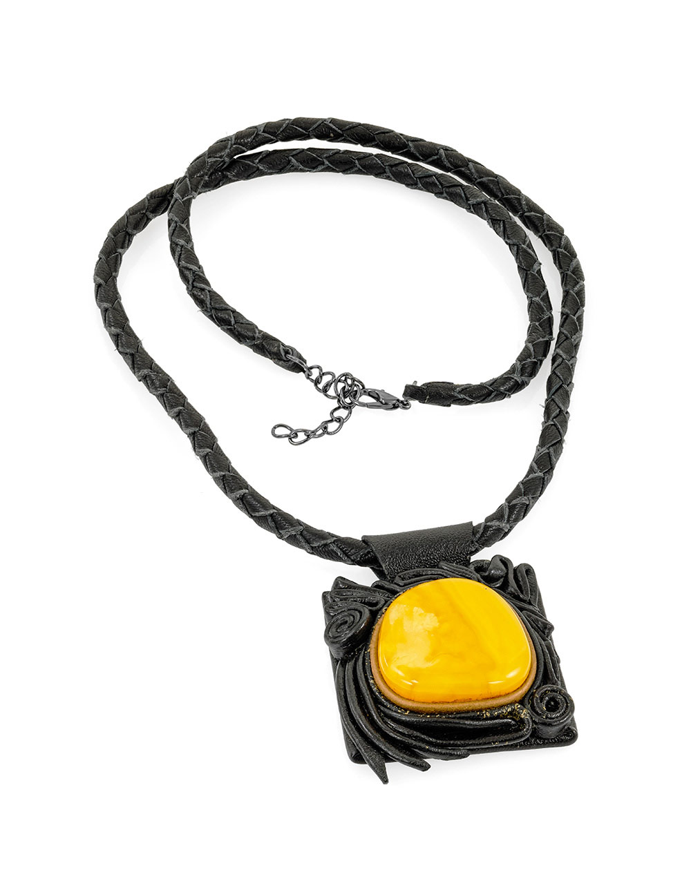 Крупный камень с разводами — будто застывшие потоки древней смолы. Кожаный шнур подчеркивает природную фактуру и придает этнические мотивы._x000D_