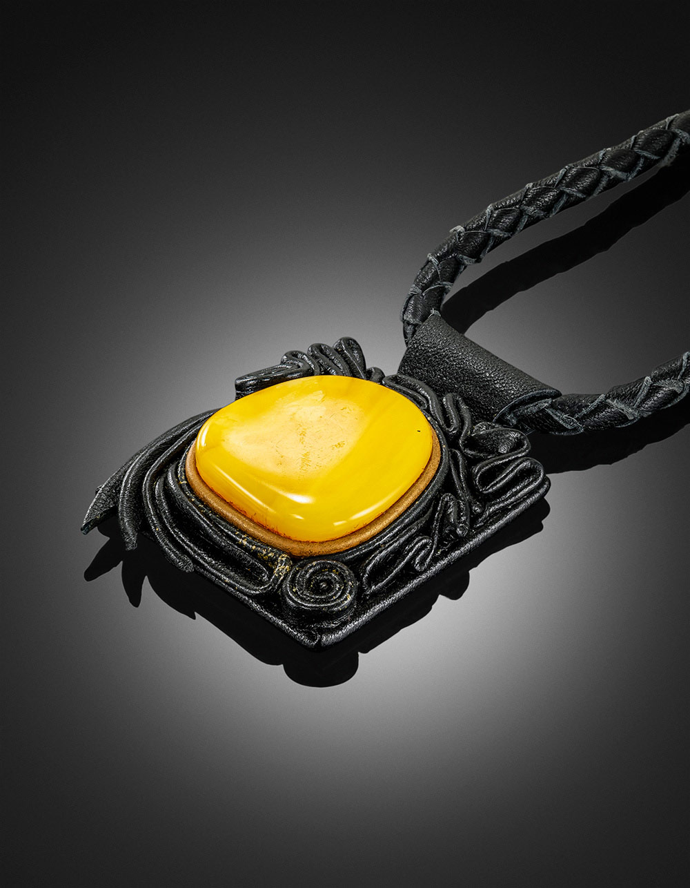Колье из кожи «Амазонка» с медовым янтарём
