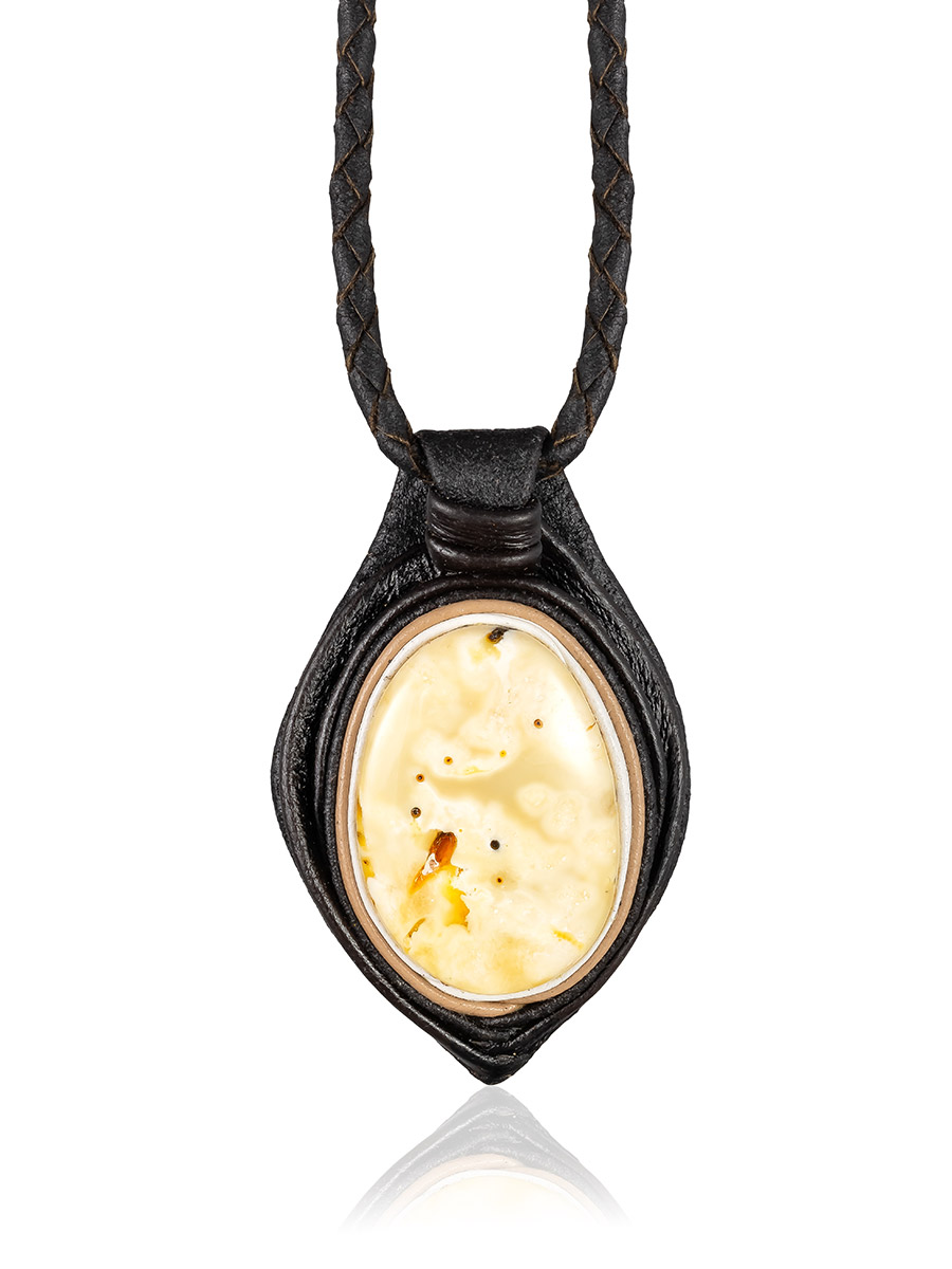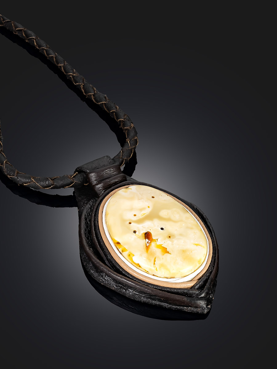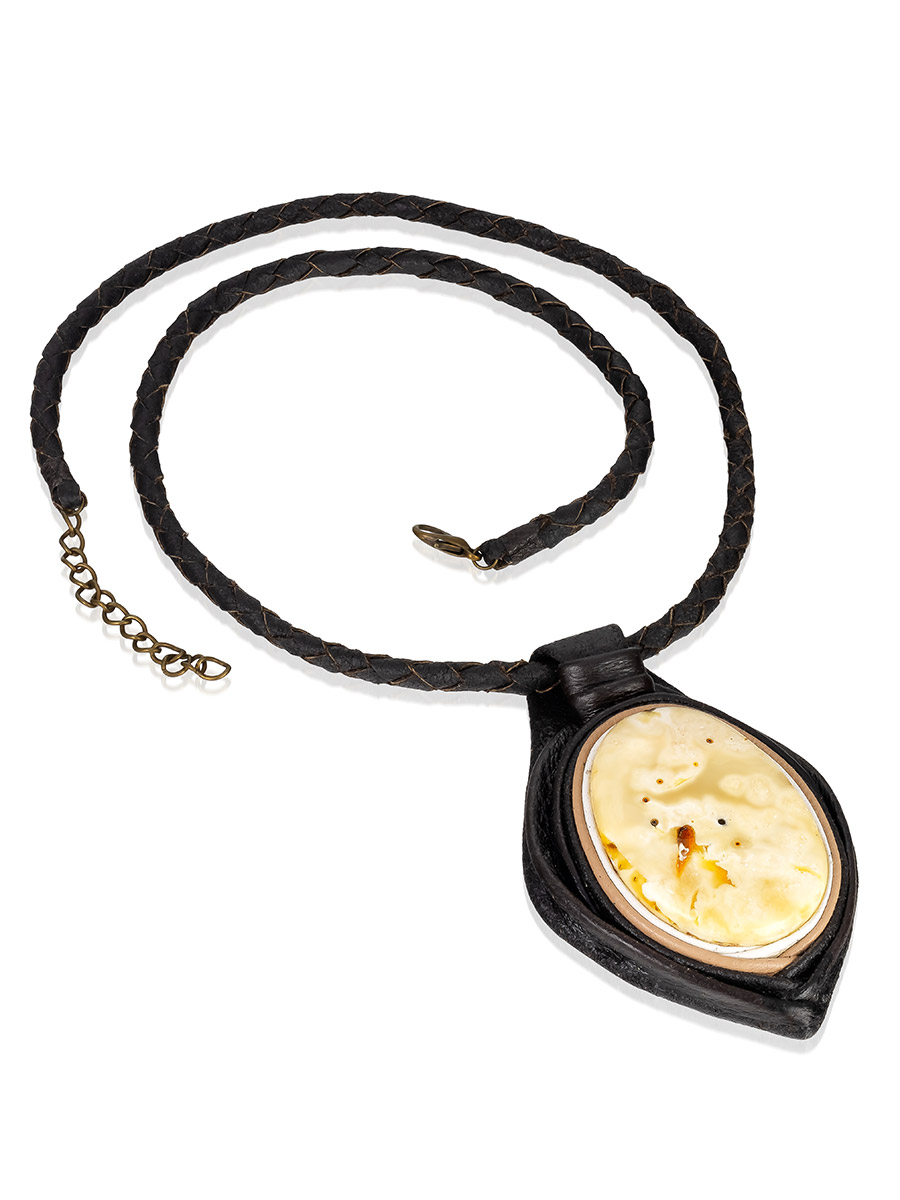 Колье из кожи «Амазонка» с пейзажным янтарём