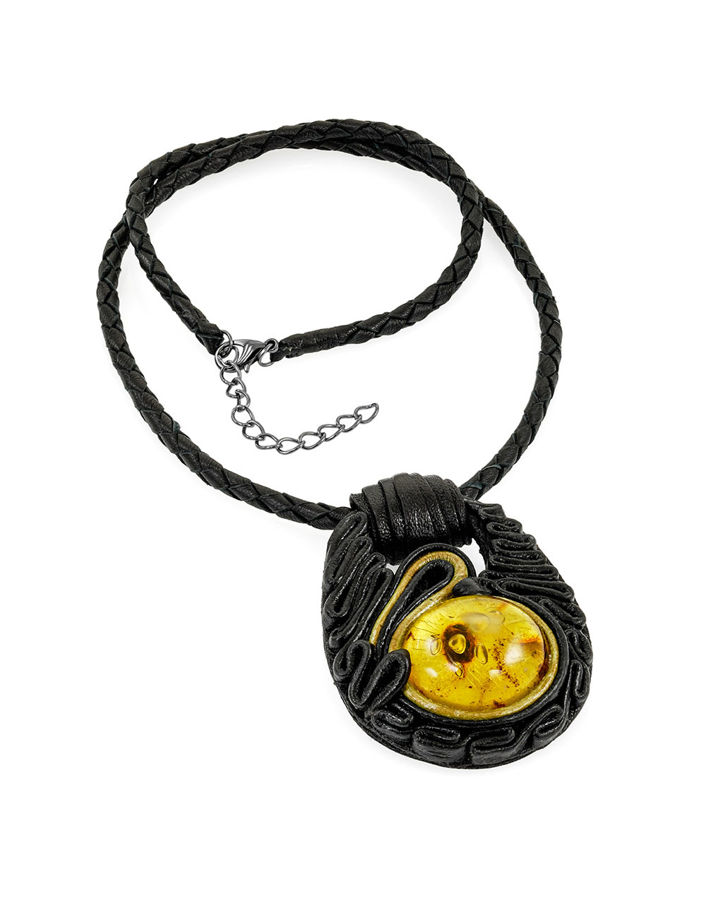 Колье из кожи «Амазонка» с янтарём