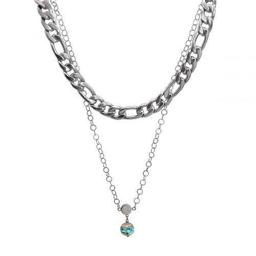 Колье изготовлено из муранского стекла и гипоаллергенной ювелирной стали, что очень важно для людей с чувствительной кожей. Металл не темнеет и не подвергается воздействиям окружающей среды, надолго обеспечивая красивый внешний вид изделия. Длина колье - 43 см + 5 см  удлиняющая цепочка, длина до подвески шар - 51 см. Диаметр стеклянного шара - 1,2 см. Вес - 81 гр.