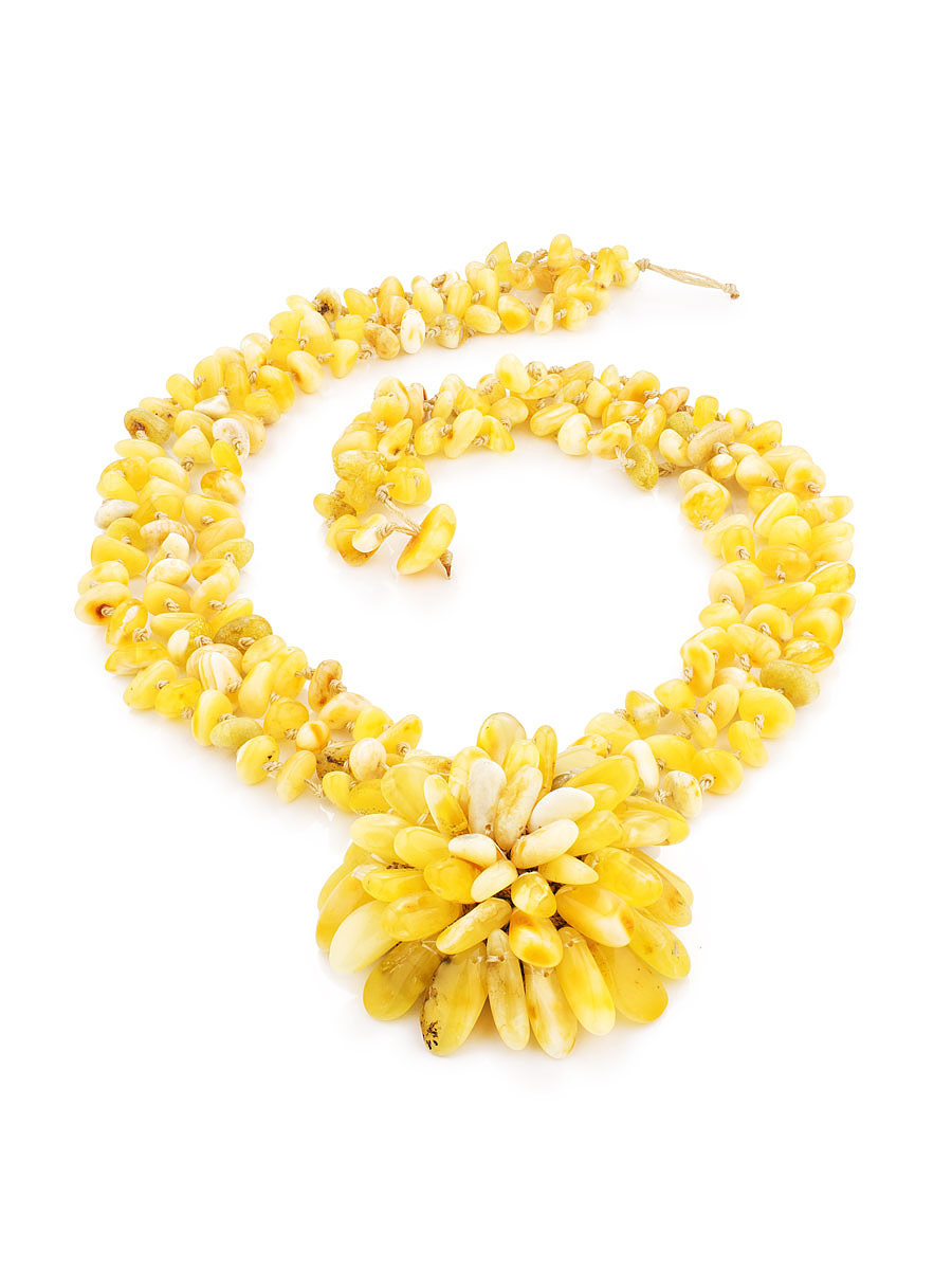 Колье из натурального балтийского янтаря медового цвета «Хризантема»