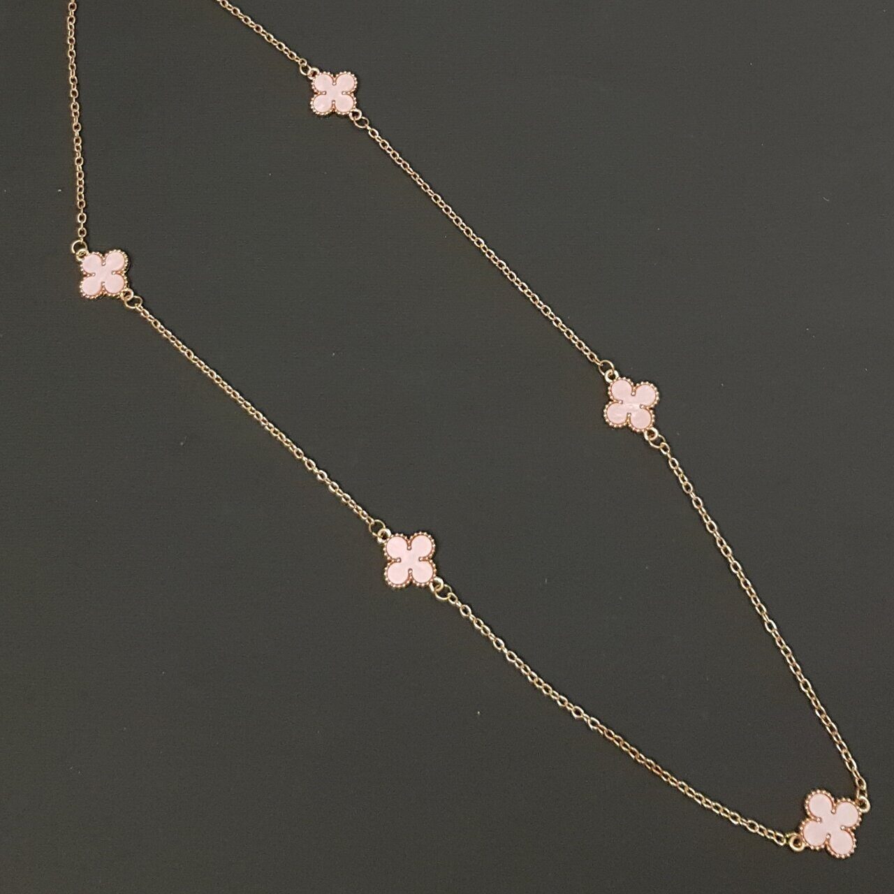Колье Клевер, цвет металла жёлтый, кулоны белые с переливом, 33108, арт.506.942
