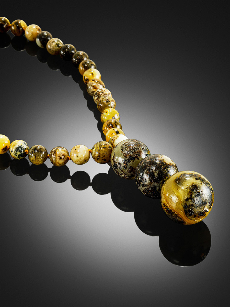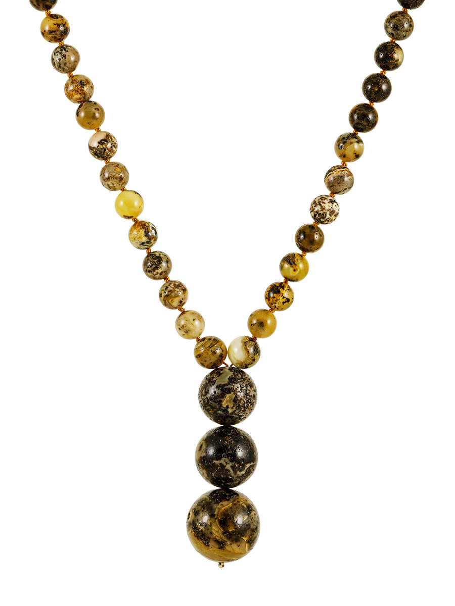 Потрясающий в своём природном разнообразии янтарь, из которого мы создали это колье, вызывает заслуженное восхищение. Каждая бусина — маленькая вселенная, полная тайн, загадок и историй. _x000D_
