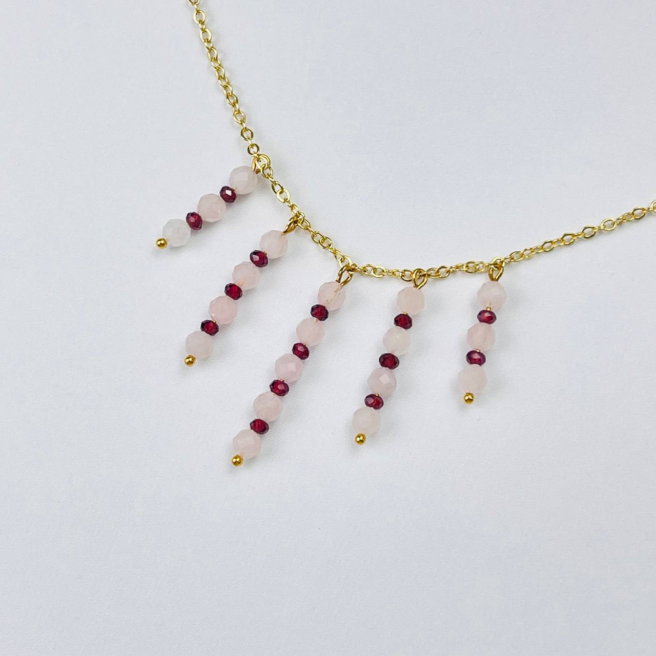 Радуга Самоцветов Колье на цепочке из Розового кварца и Граната