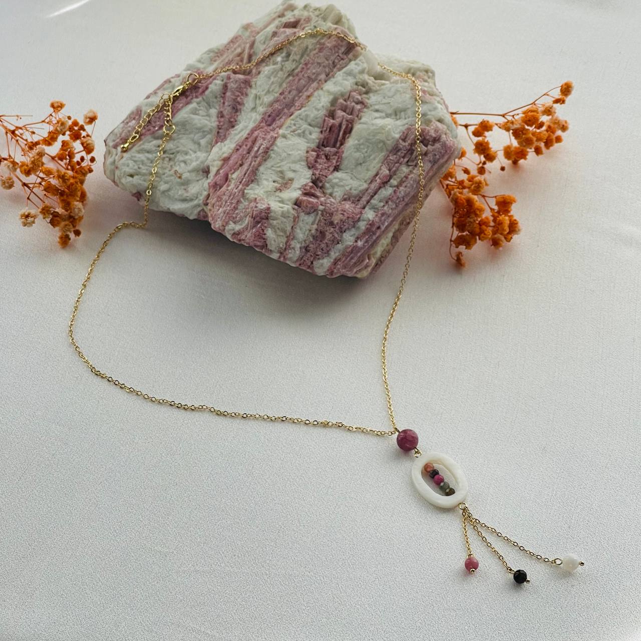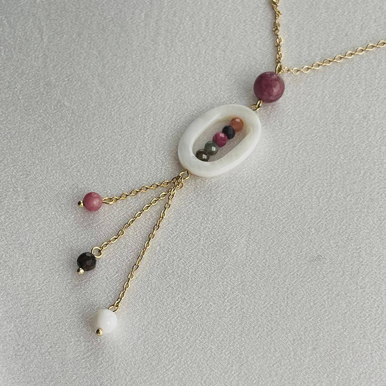 Радуга Самоцветов Колье на цепочке из Турмалина и Перламутра