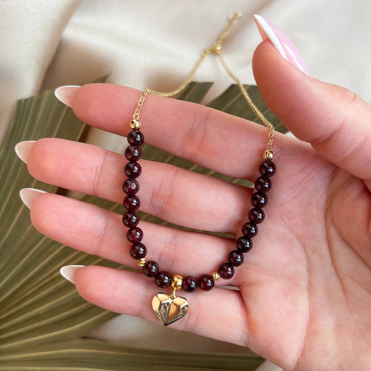 Цвет камня: Гранатовый Месторожде..показатьние: Индия Камень: Гранат Покрытие: Золото 14К Диаметр: 5,5 мм Поверхность: Гладкий Производитель: Радуга Самоцветов (Россия) Тип замка: Карабин с цепочкойние: Индия