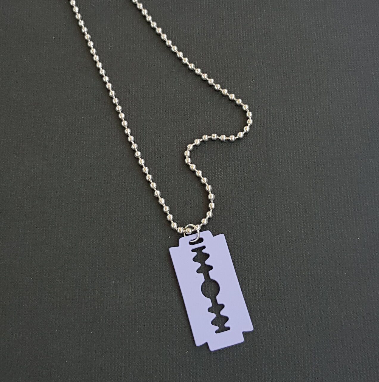 Описание Размер кулона: 3,7*1,8 см. Длина цепочки: 47 см. Стильная, модная и очень актуальная модель цепочки с кулоном лезвие. Идеально сочетаются с цепочкой.