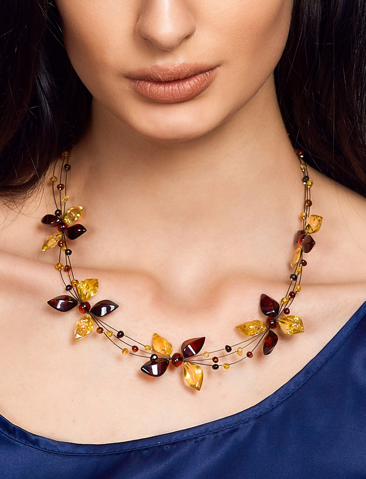 Колье на струне из натурального янтаря «Первоцвет»