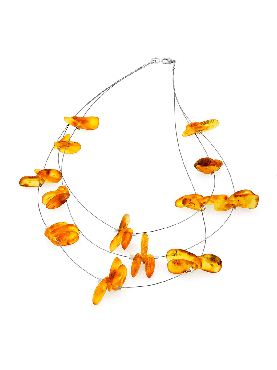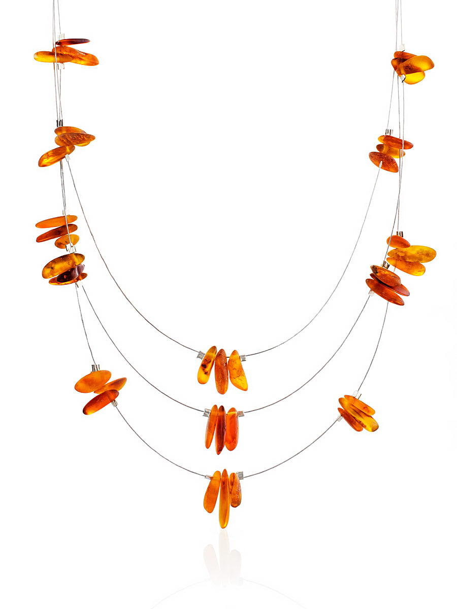 Колье на струне «Росинки» из золотисто-коньячного янтаря с мягкой шлифовкой