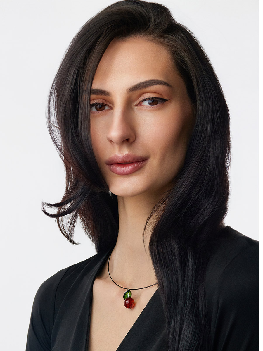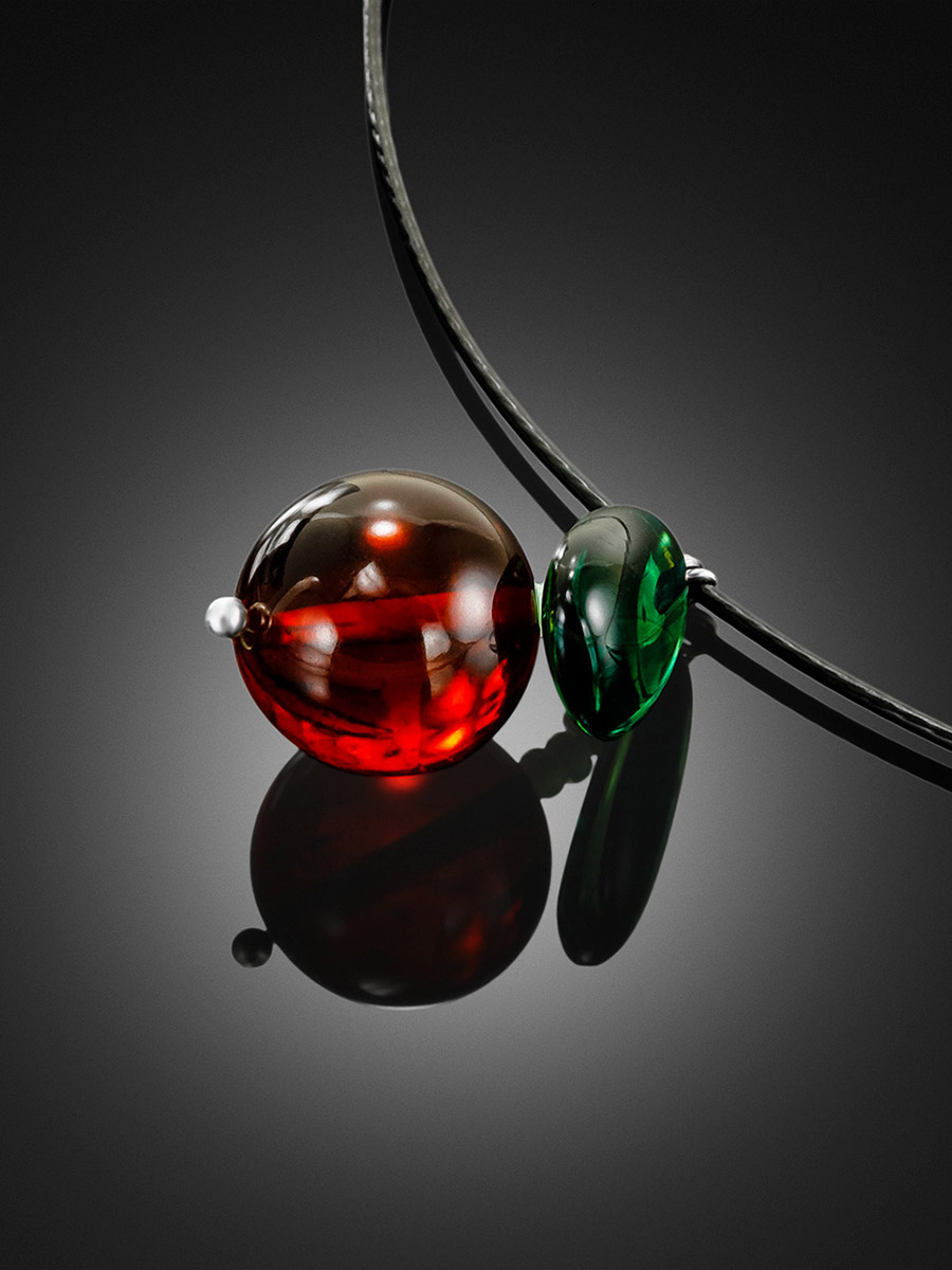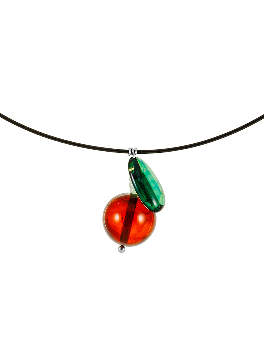 Колье-обруч с подвеской из натурального янтаря «Яблочко»